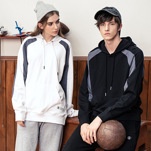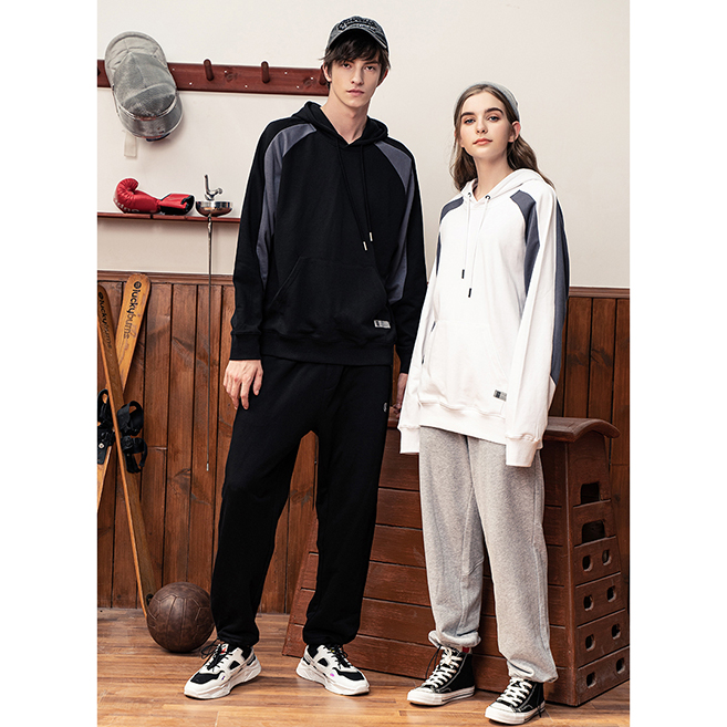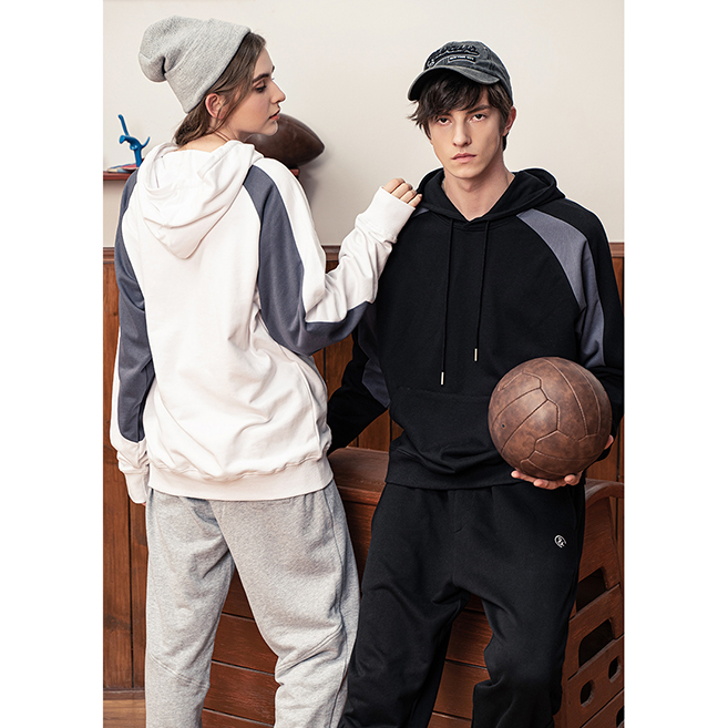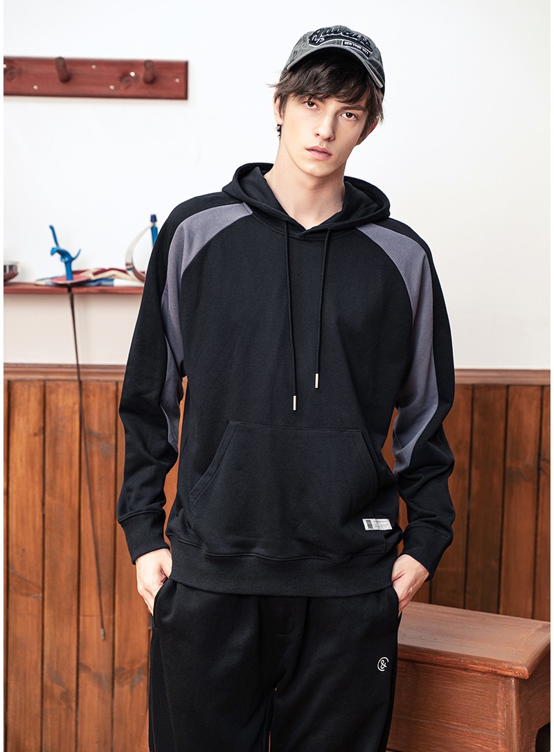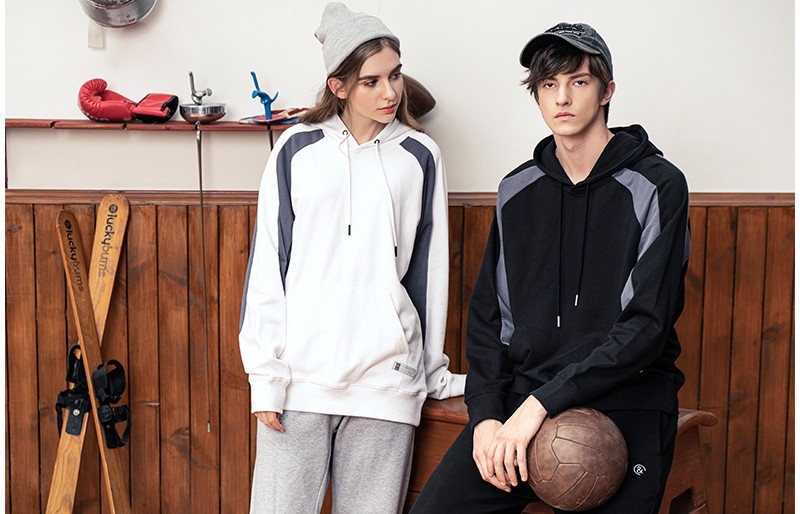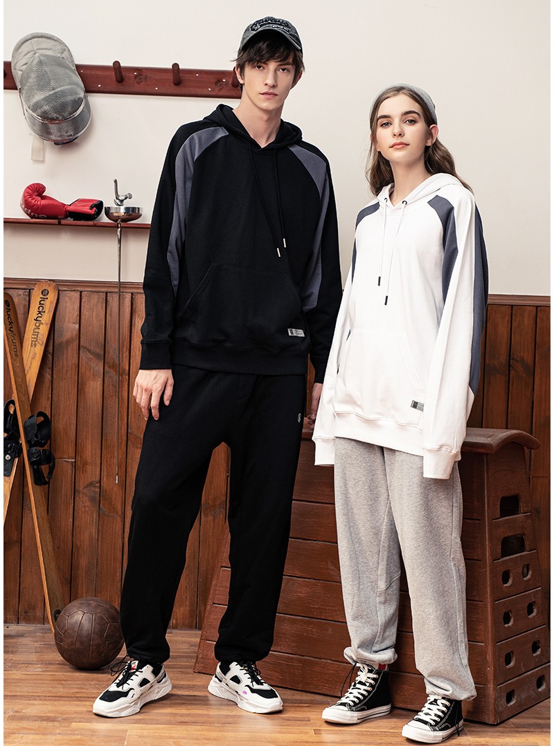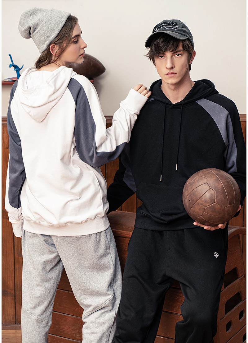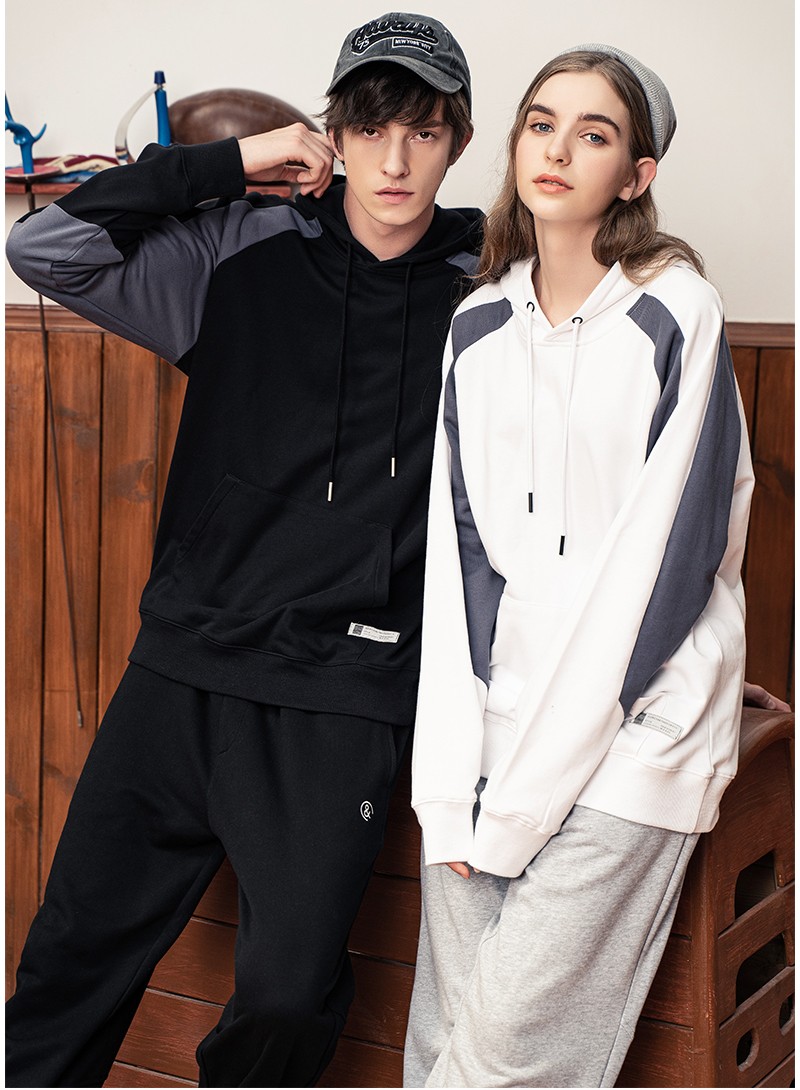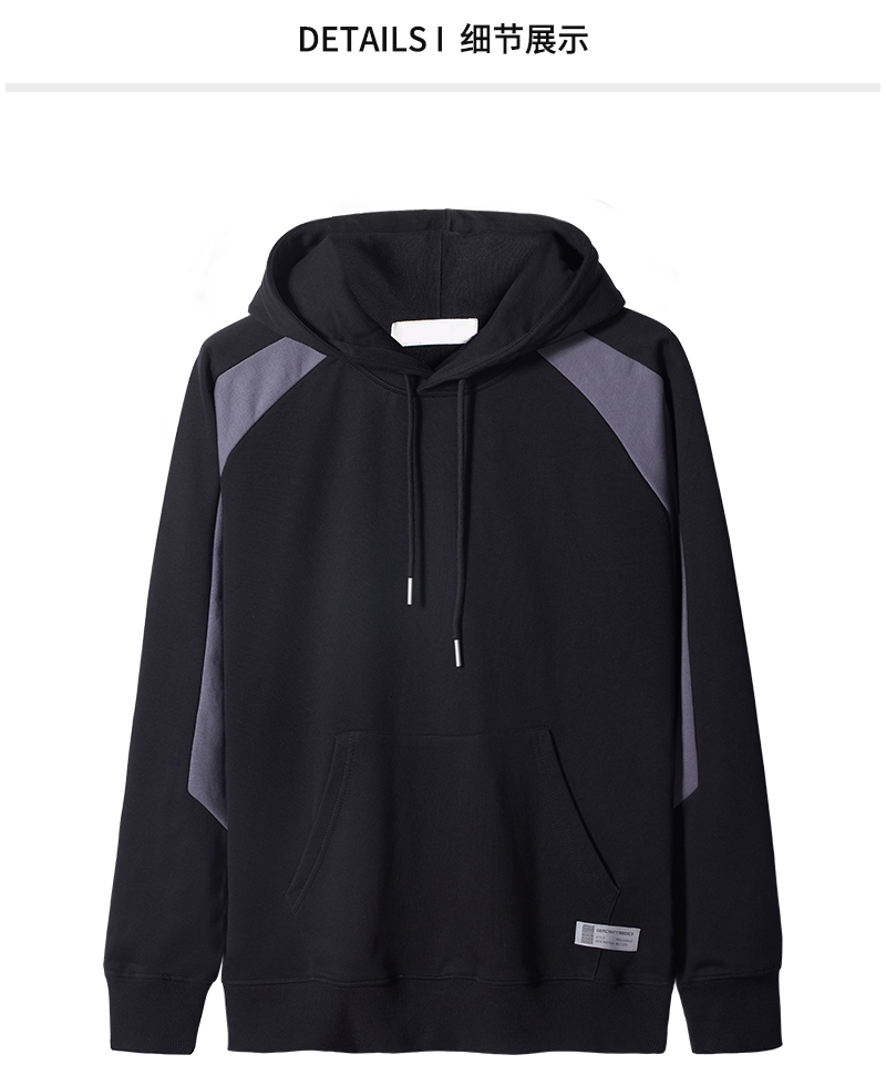YDWY201206拼接撞色連帽衛(wèi)衣定做衛(wèi)衣定做廠家秋冬新款長袖衛(wèi)衣工衣定制印花繡LOGO潮款長袖套定制男女同款工作服定制