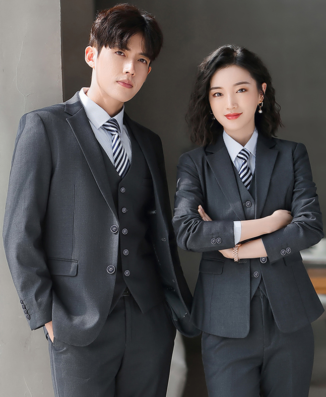 YDNMJ201212男款馬甲職業(yè)裝女套裝氣質(zhì)西服馬甲女款工裝三件套2020新款工作服面試正裝定制