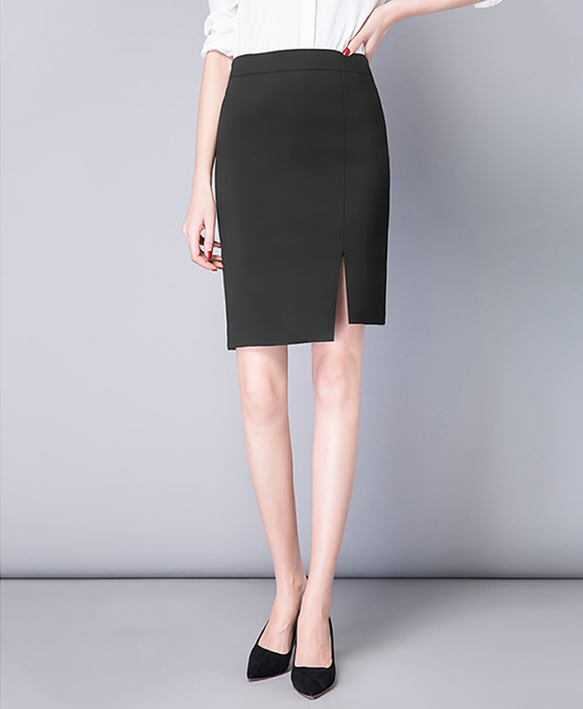 YDXQ201206職業(yè)西裙女高腰半身裙工作裝包臀一步裙OL短裙職業(yè)西裙定做廣州職業(yè)裝定制廠家
