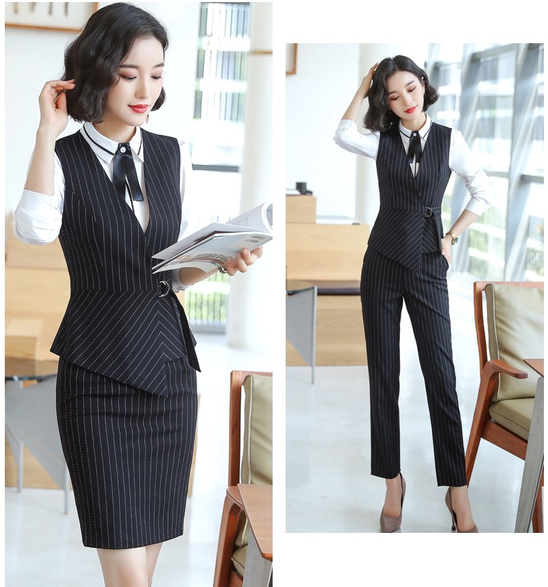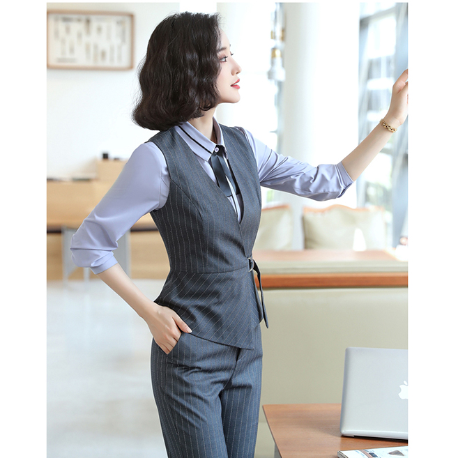YDNMJ201215女款馬甲職業(yè)裝女套裝氣質(zhì)西服馬甲女款工裝三件套2020新款工作服面試正裝定制