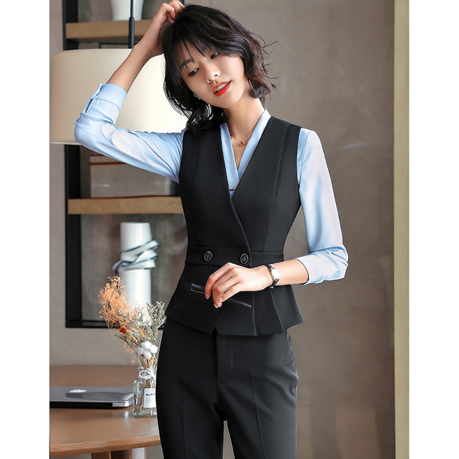 YDNMJ201209女款馬甲職業(yè)裝女套裝氣質(zhì)西服馬甲女款工裝三件套2020新款工作服面試正裝定制