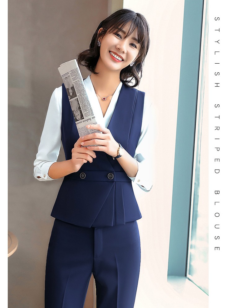 YDNMJ201215女款馬甲職業(yè)裝女套裝氣質(zhì)西服馬甲女款工裝三件套2020新款工作服面試正裝定制
