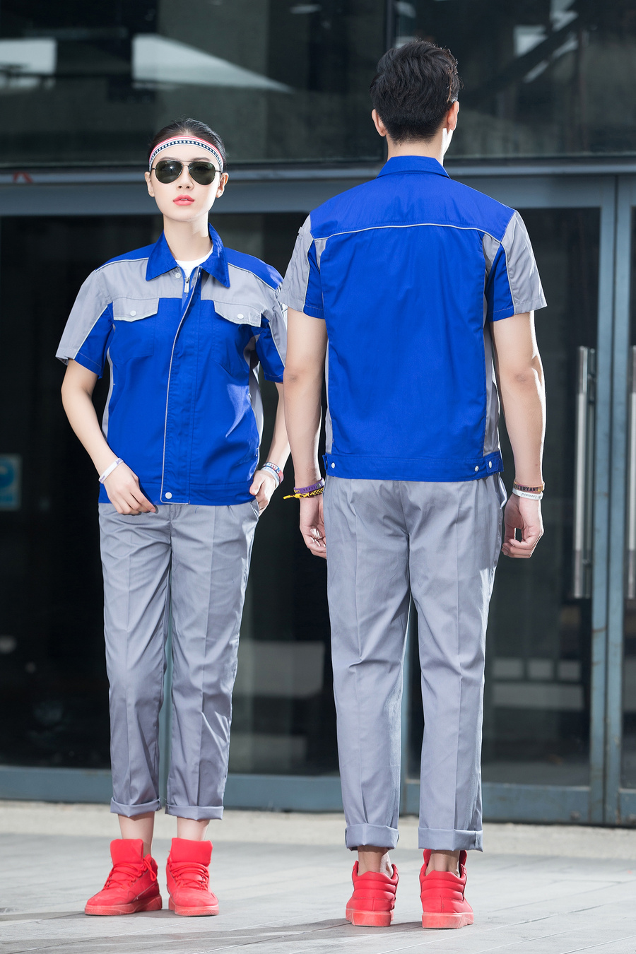 YDS1505工衣訂做衣短袖工作服套裝工裝廣州生產(chǎn)廠家工作服短袖套裝定制廠家工服夏季薄款工廠車間透氣勞保服